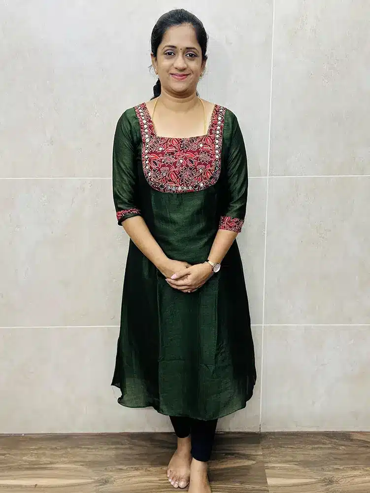 (Dark mehandhi green) Soft silk top with beautiful handwork on yoke with crepe lining (Aline pattern)