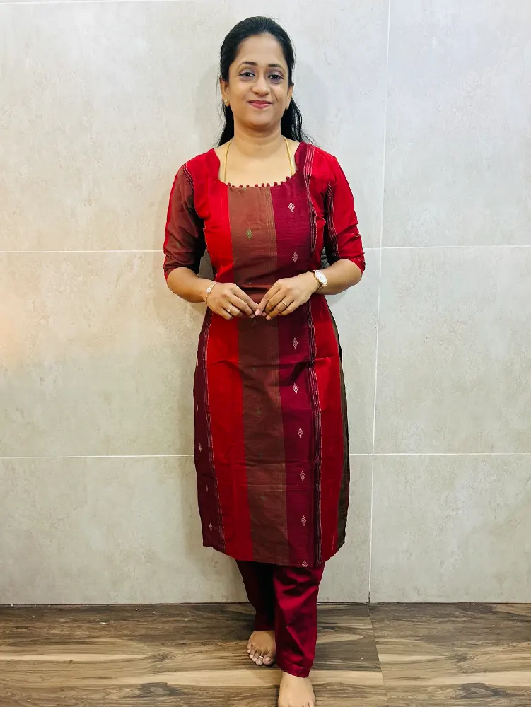 Semi raw silk top (cotton lining) with all over thread weaving paired with Semi raw silk bottom (free size)