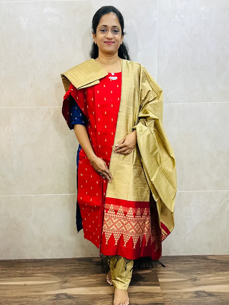 Semi raw silk top (cotton lining) paired with semi raw silk dupatta and semi raw silk bottom (Free size)