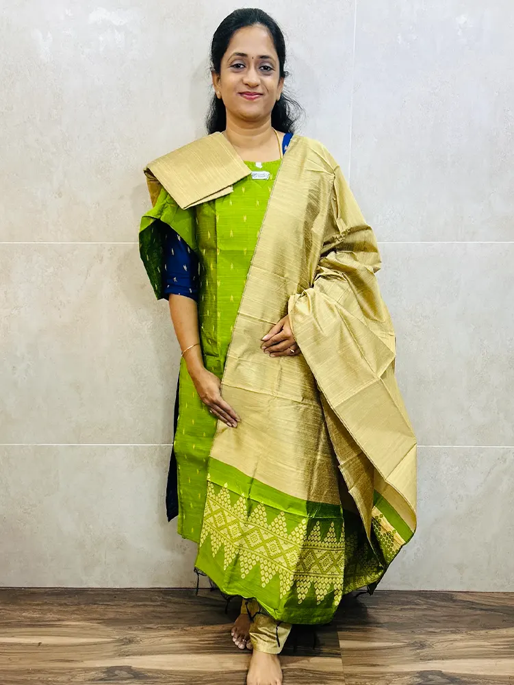 Semi raw silk top (cotton lining) paired with semi raw silk dupatta and semi raw silk bottom (Free size)