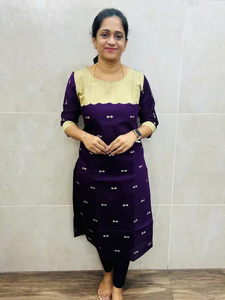 Majentha Purple – Premium silk cotton top (cotton lining) with all over thread woven buttas (straight cut)