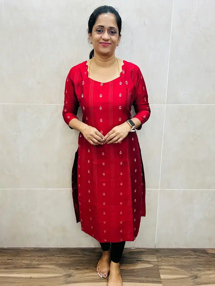 Red – Premium silk cotton top (cotton lining) with all over thread woven buttas (straight cut)