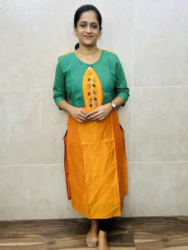 Premium silk cotton top (cotton lining) with embroidered yoke and premium cotton overcoat (straight cut)