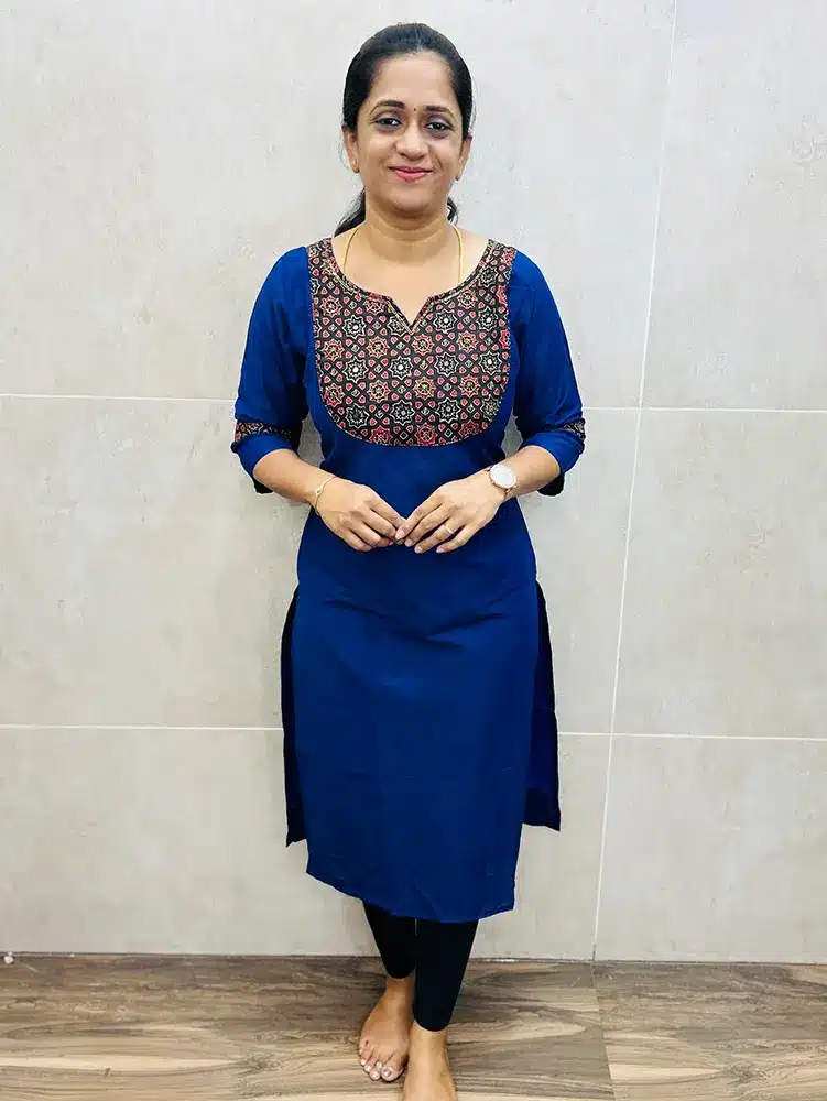 Royal Blue – Premium silk cotton top (cotton lining) with handworked Ajrakh patchwork on yoke (straight cut)