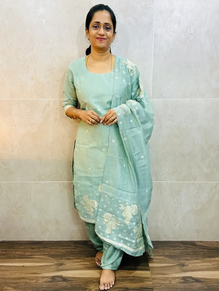 Soft Benarasi silk top (full cotton lining) with exclusive jamdani weaving paired with benarasi soft silk dupatta and silk bottom