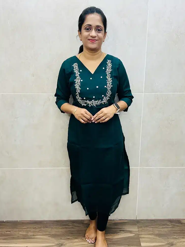 Soft Chanderi silk top (full crepe lining) with pearl handwork on yoke (straight cut)