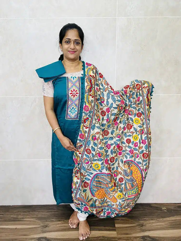 Soft cotton top paired with Phulkari dupatta and cotton bottom
