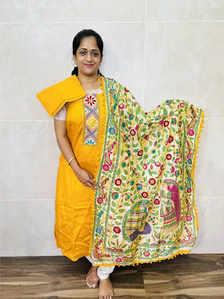 Soft cotton top paired with Phulkari dupatta and cotton bottom