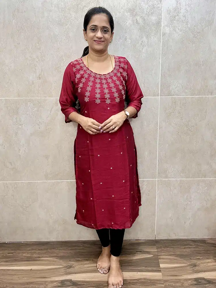 Soft crepe silk top (crepe lining) with beautiful embroidered yoke (straight cut)