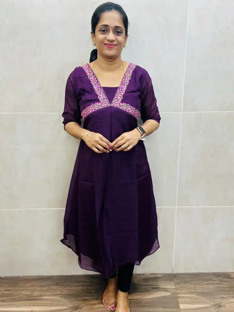 Soft crepe silk top(crepe lining) with beautiful machine embroidered yoke(Aline pattern)