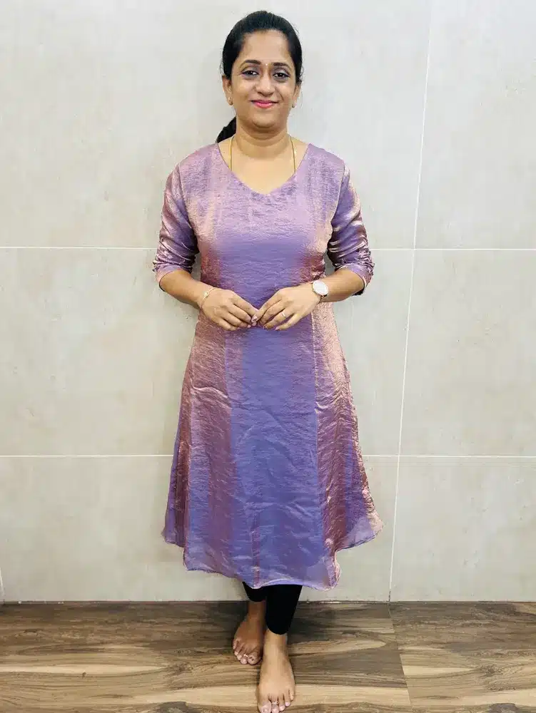 (Lavender)Soft georgette organza top(full crepe lining) with embroidered sleeves(Aline pattern)