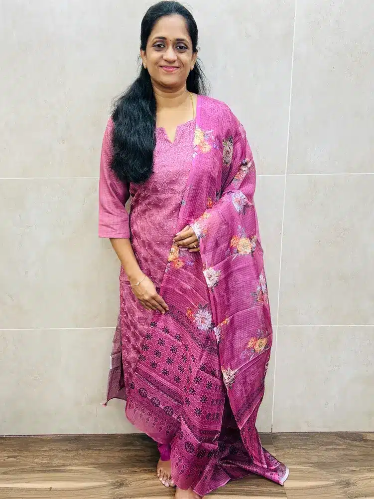 Soft Kota top (full crepe lining) with allover phulkari embroidery paired with printed Kota dupatta and silk bottom (straight cut)