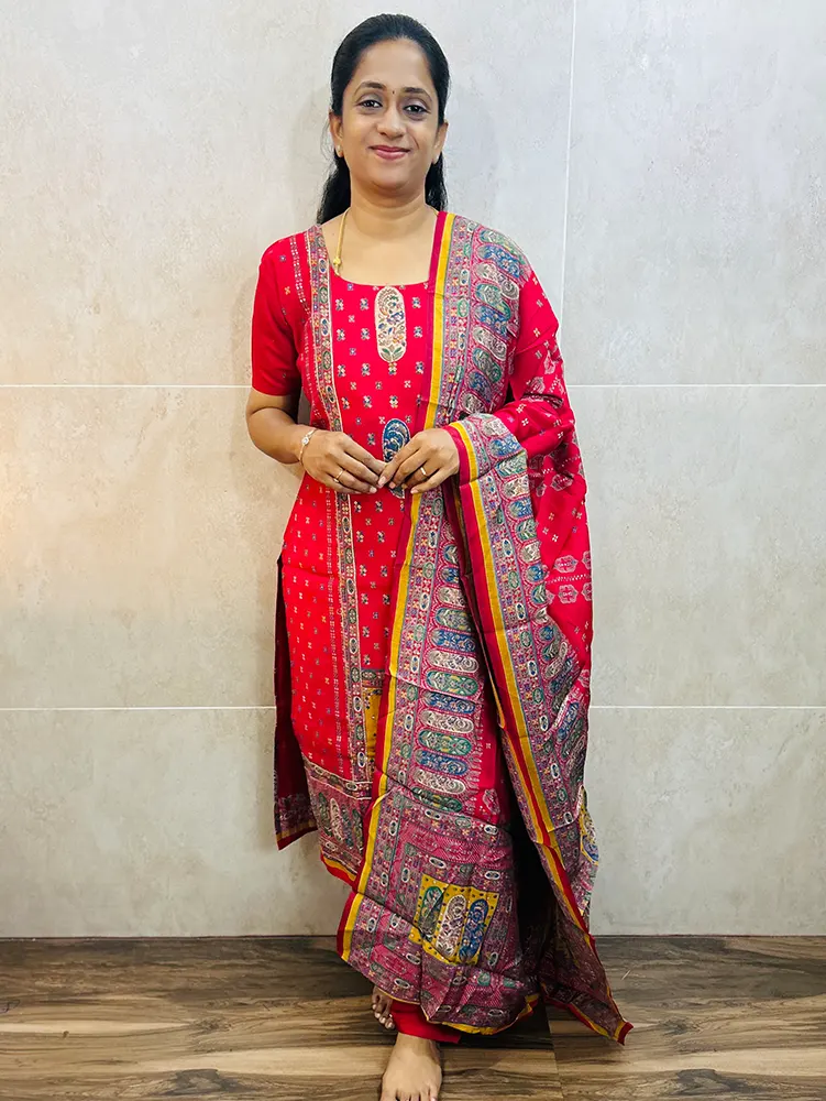 Soft muslin silk top (crepe lining) paired with muslin silk dupatta and silk bottom (free size)
