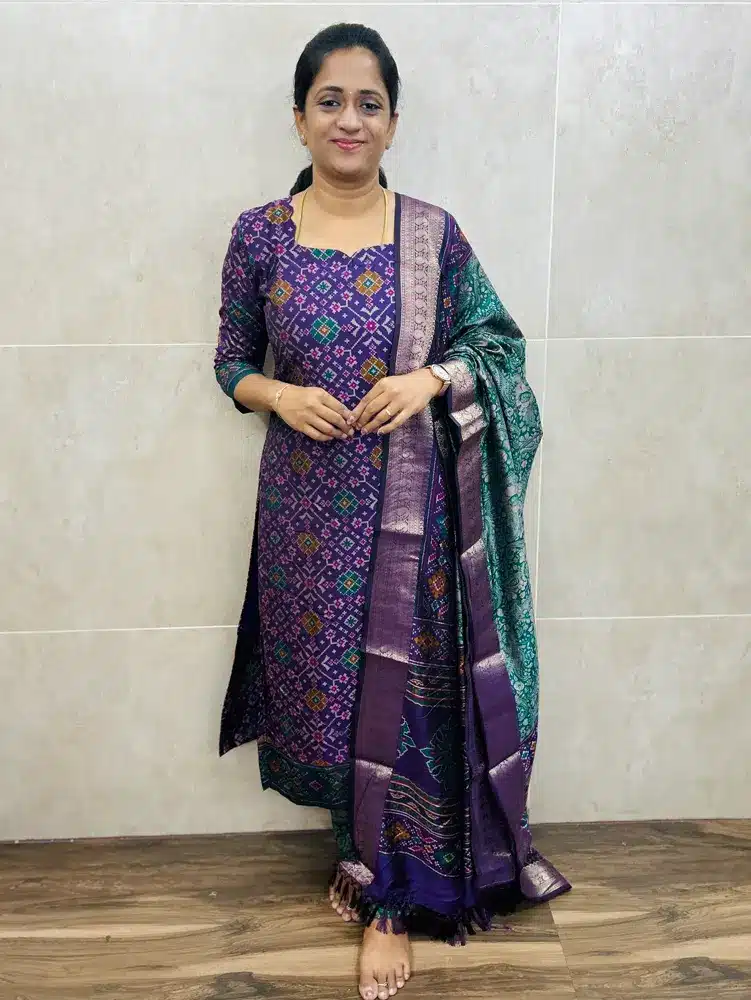 (Light Purple)Soft Patola silk top(cotton lining)paired with Patola silk dupatta and printed silk bottom(free size)