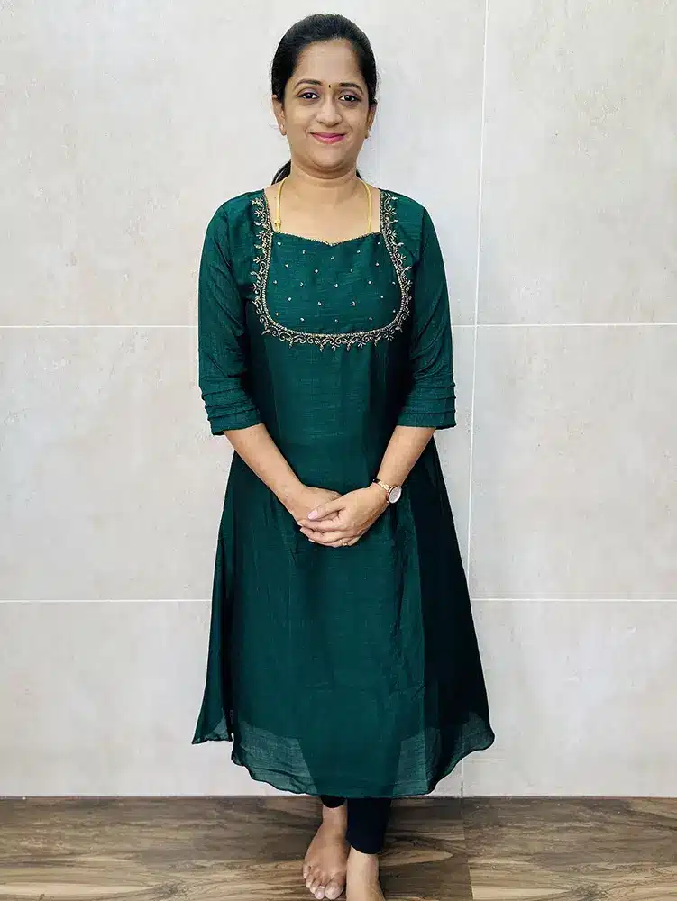 Soft semi silk kurti with beautiful handwork on yoke with crepe lining (Aline pattern)