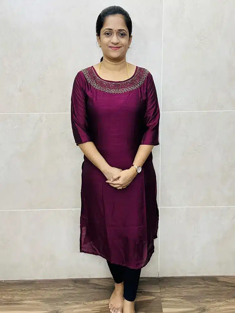 Soft semi silk kurti with beautiful handwork on yoke with crepe lining (Straight Cut)