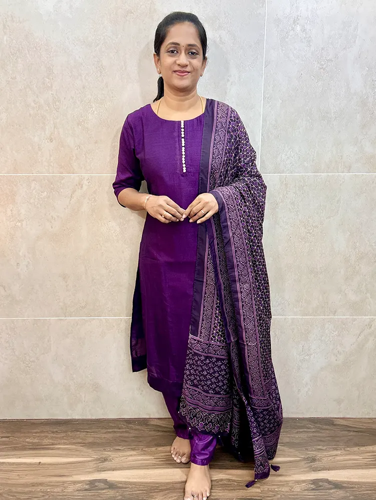 Soft silk top (cotton lining) with potli work in yoke paired with semi modal silk dupatta and silk bottom (free size)