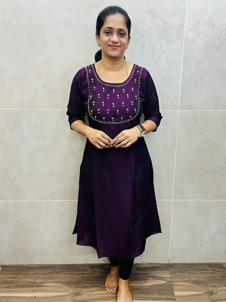 Dark Purple – Soft silk top (crepe lining) with beautiful handwork on yoke (Aline pattern)