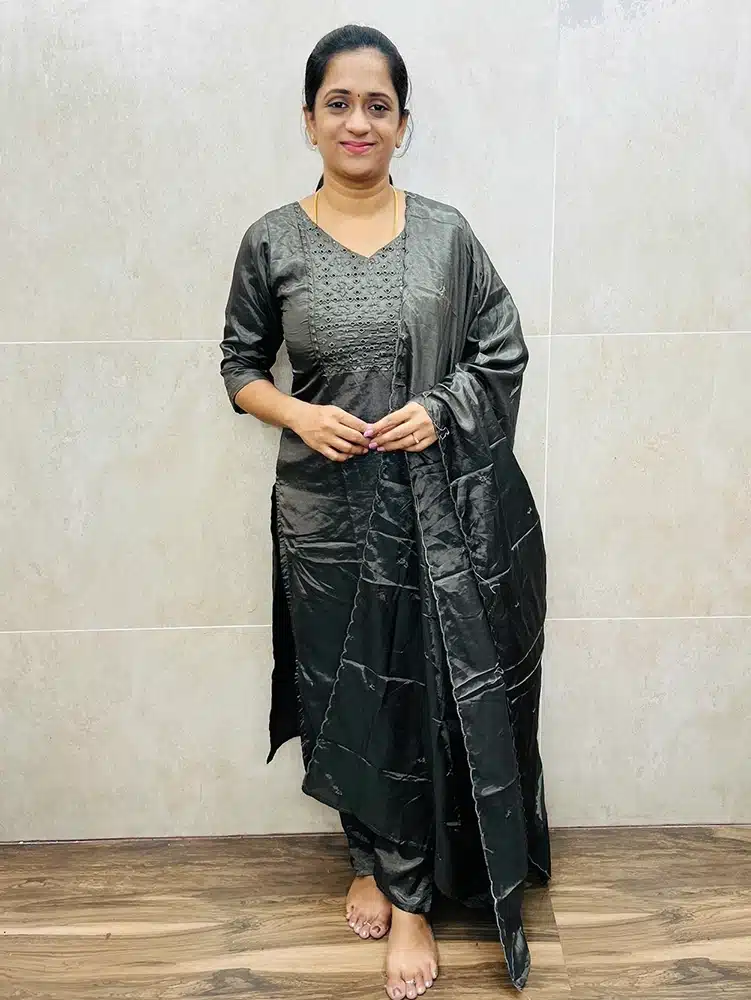 Soft silk top with cutworked yoke (crepe lining ) paired with embroidered soft silk dupatta and silk bottom (straight cut)