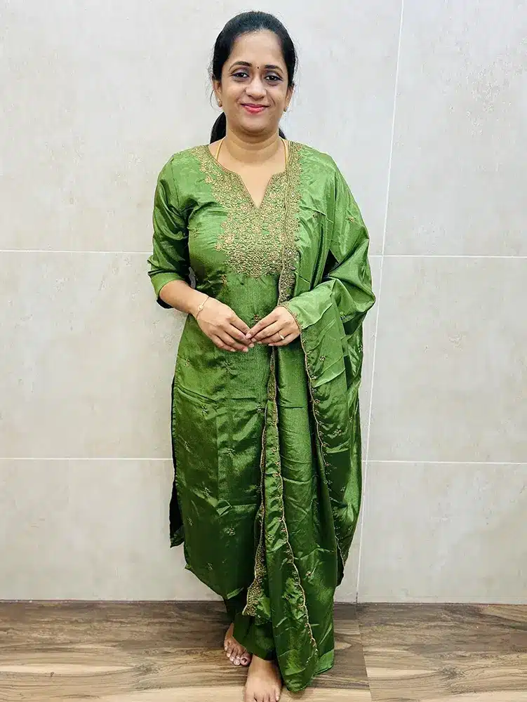 Soft silk top (full crepe lining) with embroidered yoke paired with embroidered soft silk dupatta and silk bottom (straight cut)