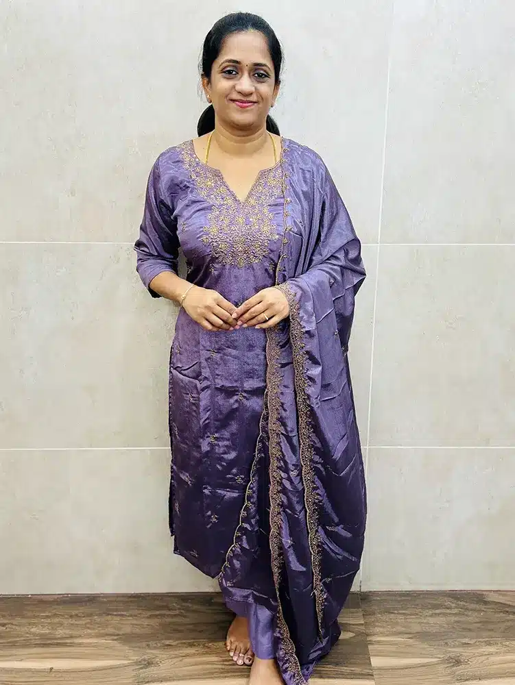 Soft silk top (full crepe lining) with embroidered yoke paired with embroidered soft silk dupatta and silk bottom (straight cut)