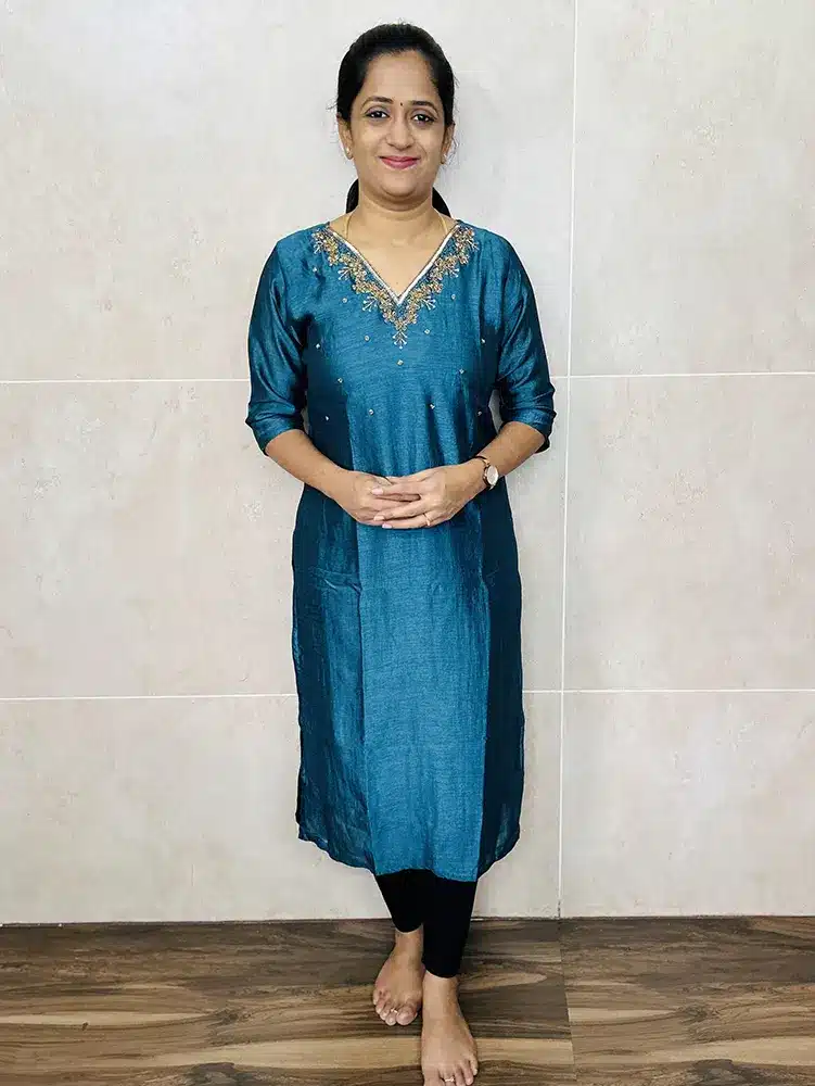 Soft silk top(crepe lining) with beautiful handworked yoke (Straight Cut)