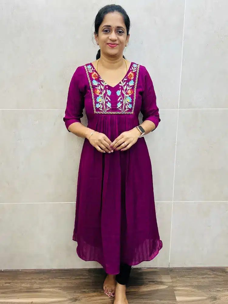 Soft silky crepe top (crepe lining) with all over brasso weaving and machine embroidered yoke (Aline pattern)