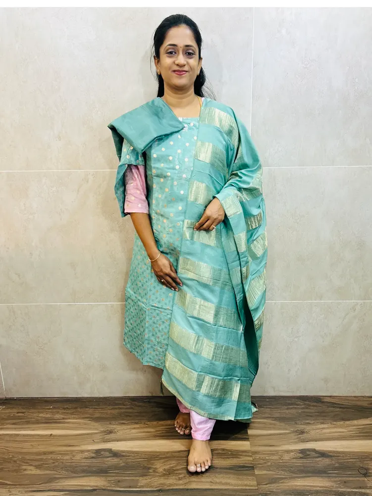 Soft tissue silk top(cotton lining) with allover jacquard and zari woven buttas paired with soft silk dupatta and silk bottom(free size)