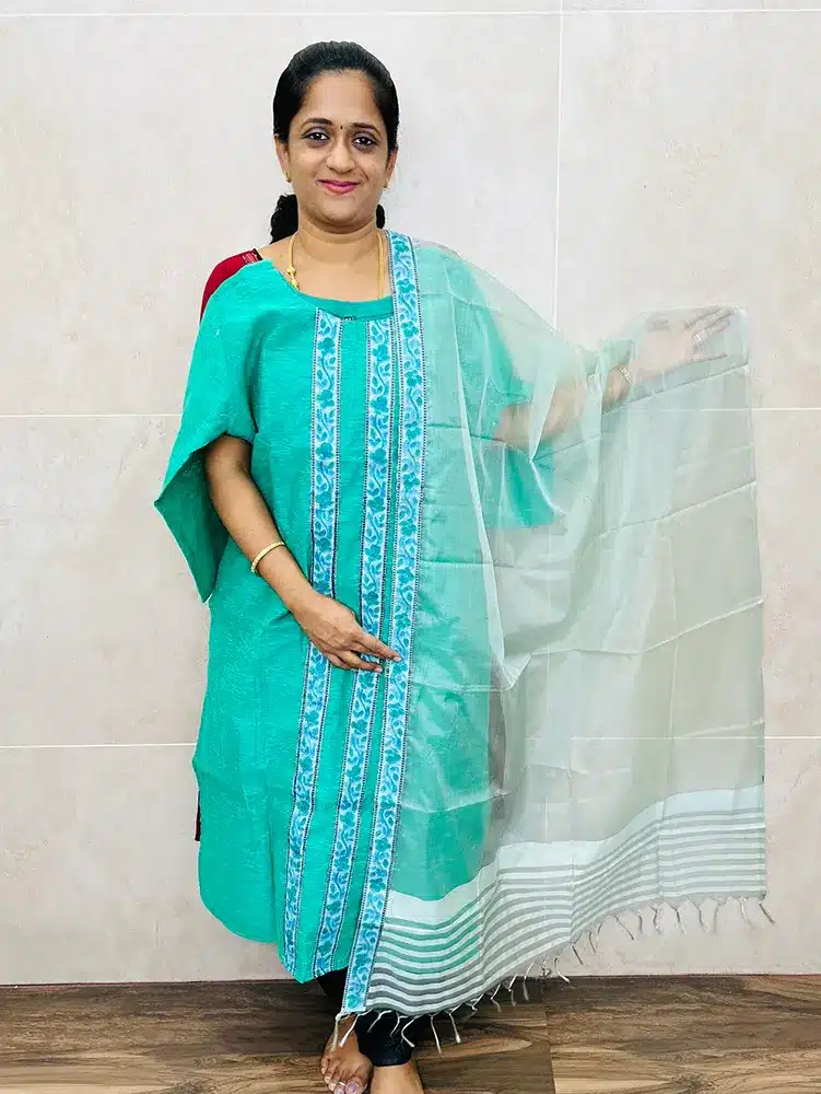 Premium Linen cotton top (with lining) paired with organza dupatta