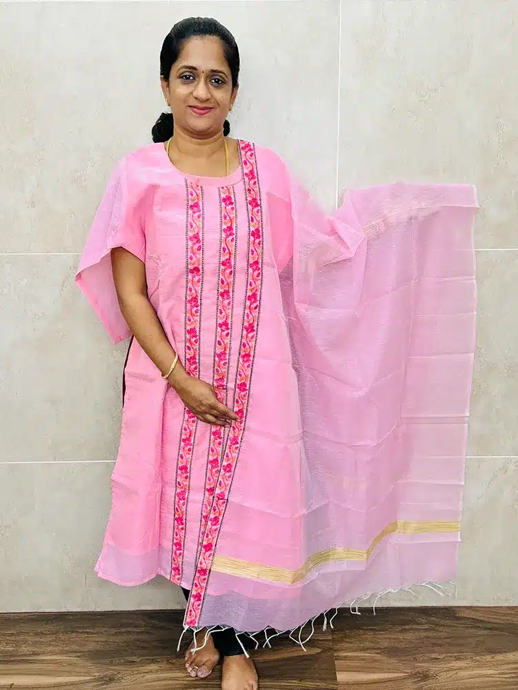 Premium Linen cotton top (with lining) paired with organza dupatta
