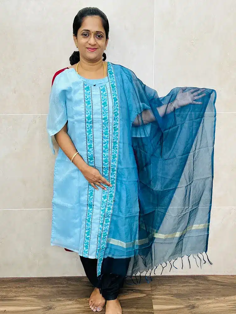Premium Linen cotton top (with lining) paired with organza dupatta
