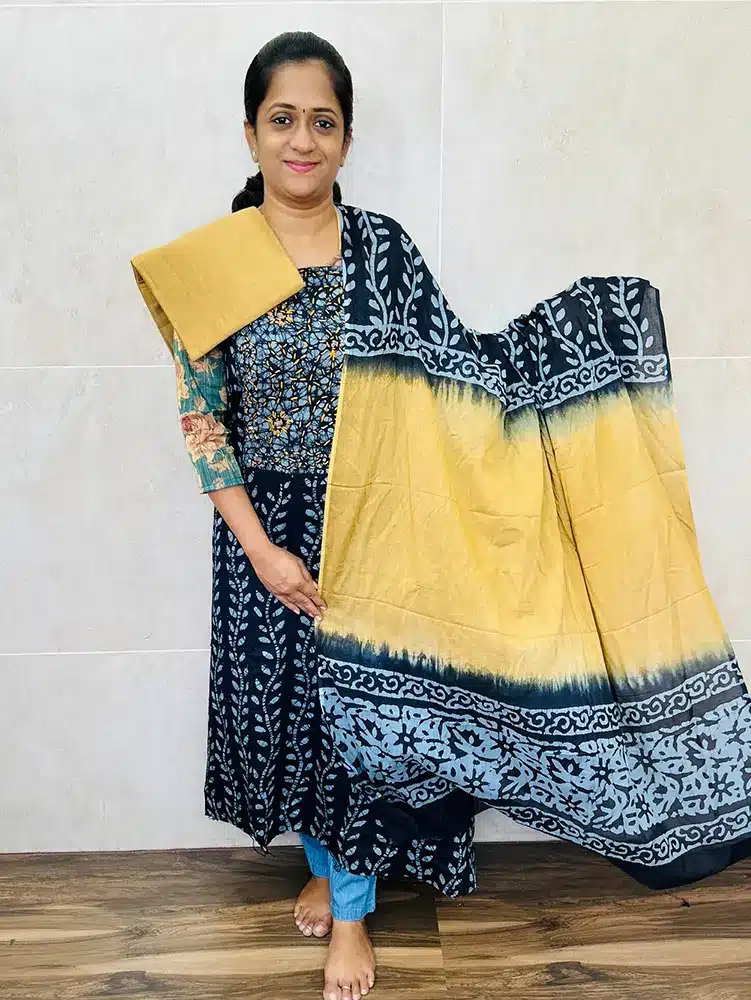 Batik printed cotton top with cotton dupatta and cotton bottom