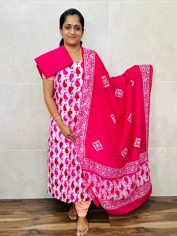 Batik printed cotton top with cotton dupatta and cotton bottom