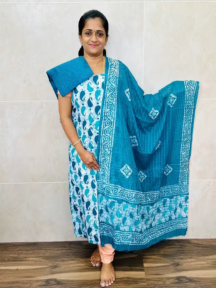Batik printed cotton top with cotton dupatta and cotton bottom