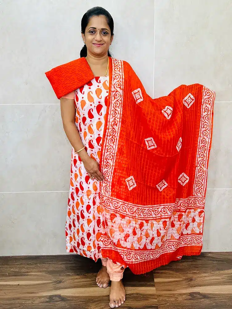 Batik printed cotton top with cotton dupatta and cotton bottom