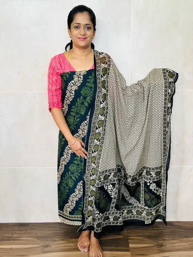 Batik printed cotton top with cotton dupatta and cotton bottom