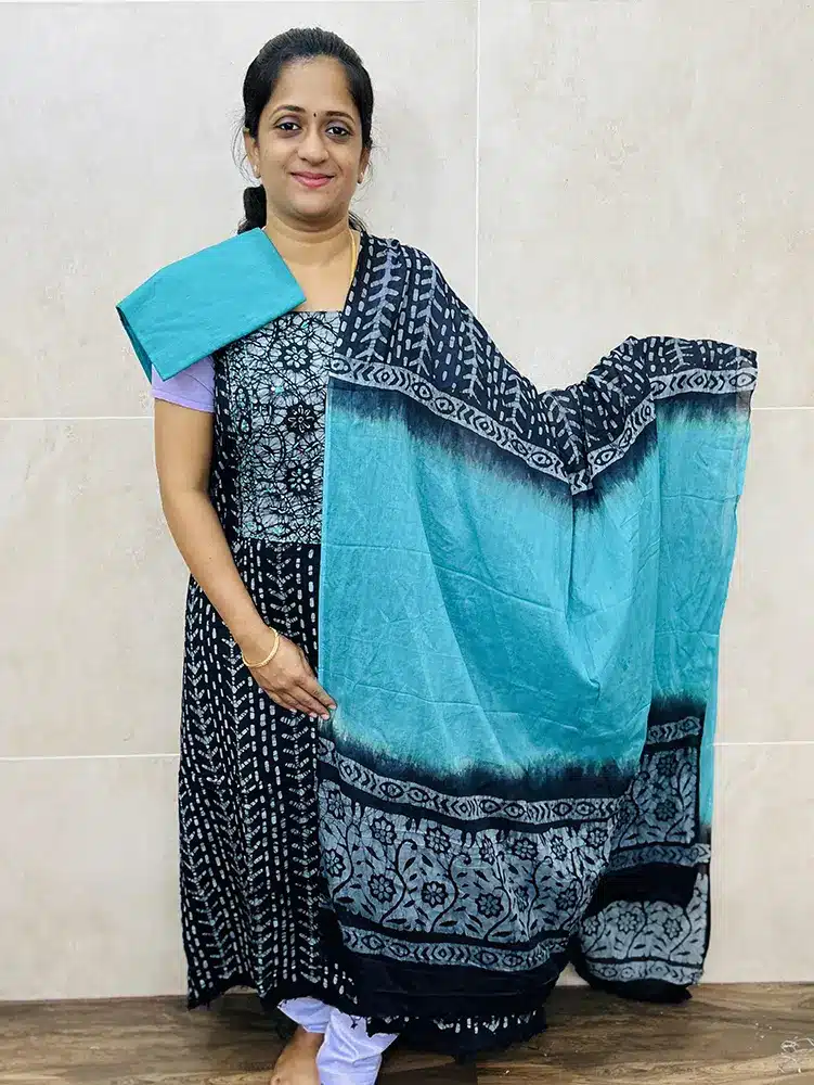 Batik printed cotton top with cotton dupatta and cotton bottom
