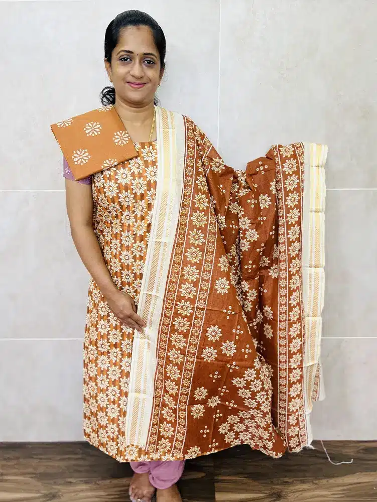 Batik printed cottton top paired with a printed cotton dupatta and cotton bottom