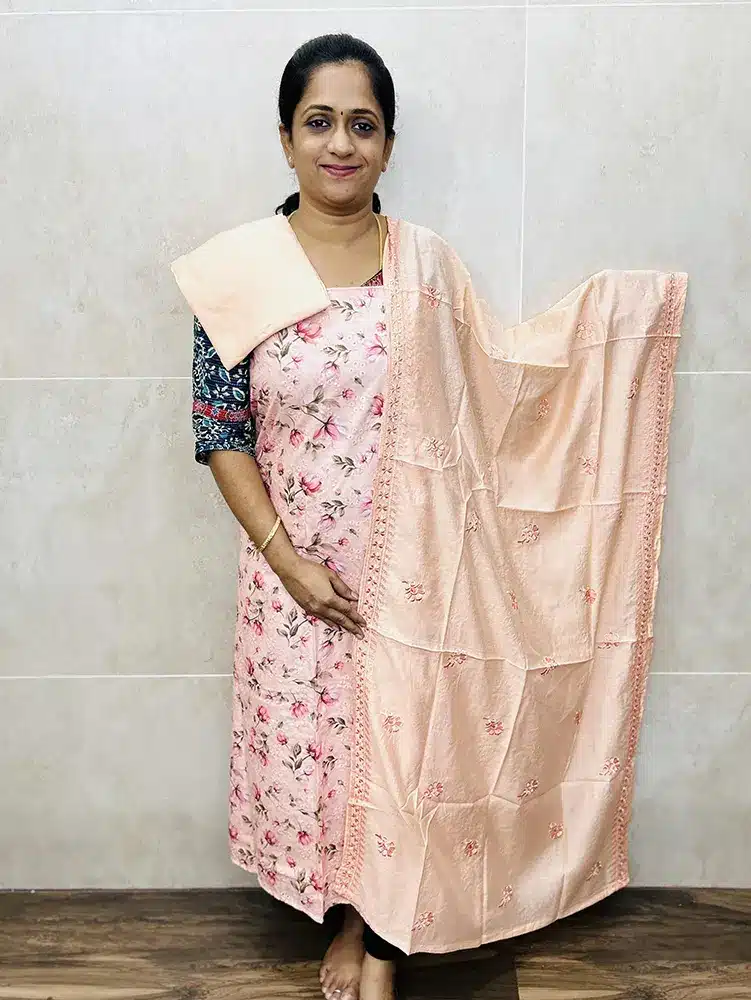 Most of our cotton salwar suits, measurement of the top will be 2.5 meters, dupatta will be from 2.2 to 2.5 meters and bottom will be 2 meters. If you have measurement constraint, please check with us through whatsapp (9176641794) prior booking.