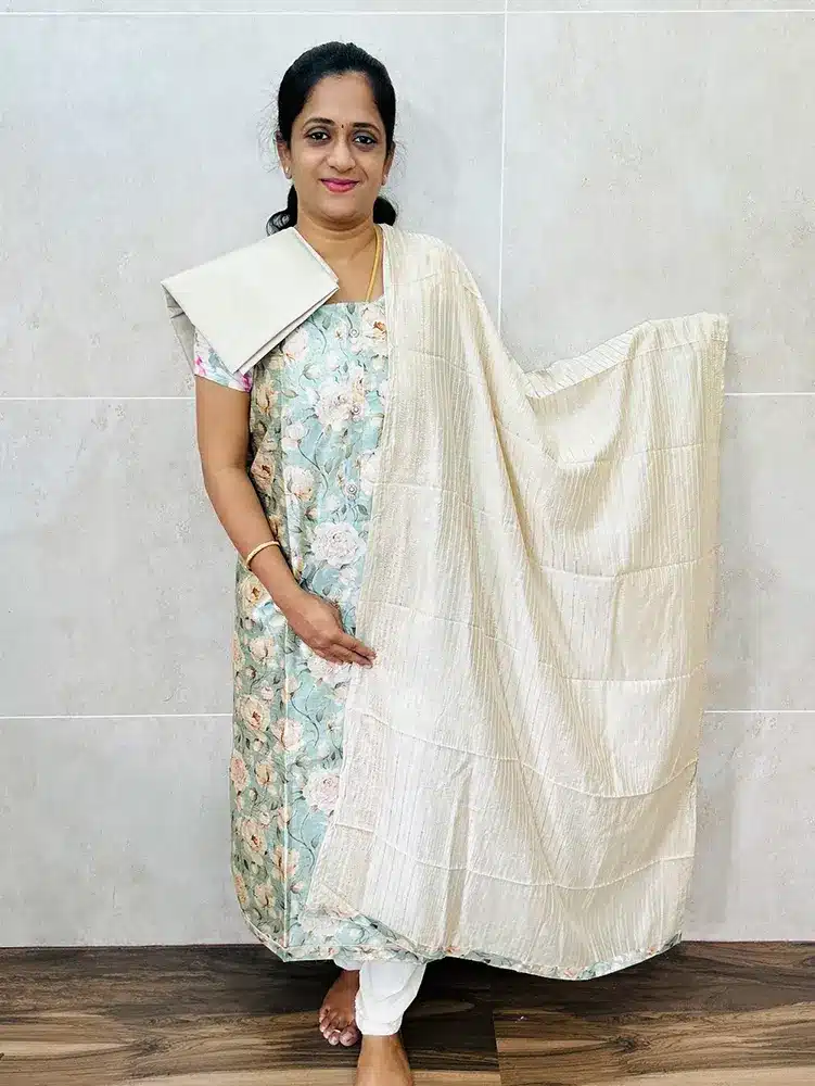 Digital printed Chanderi silk top (lining included) paired with embroidered soft silk dupatta and silk bottom