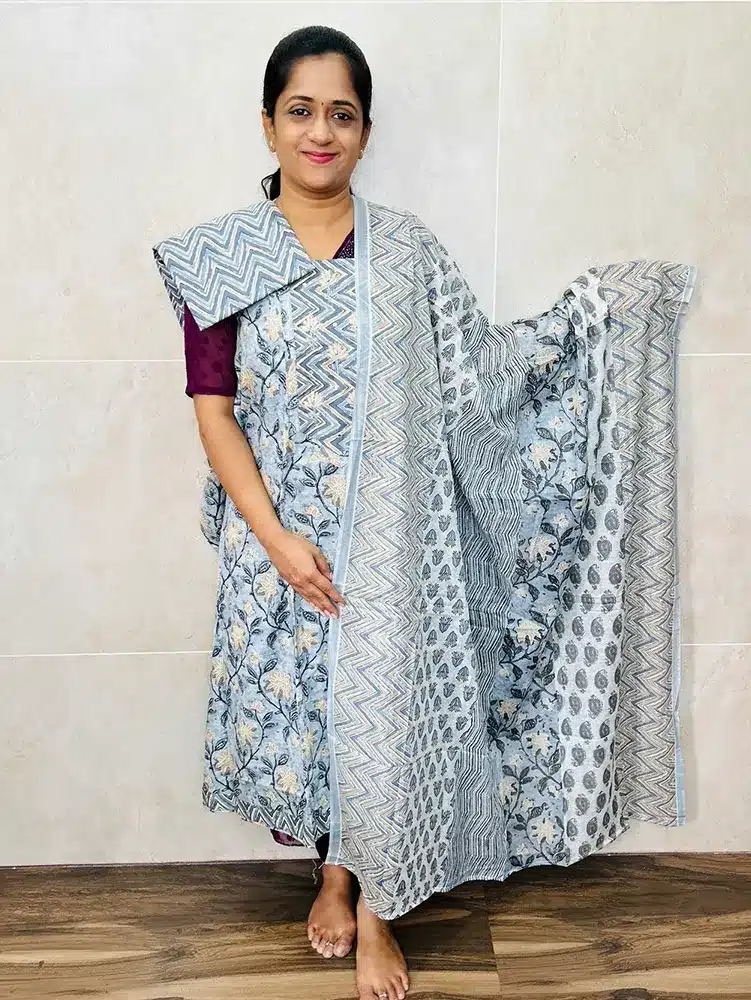 Handblock printed Jaipur cotton top with cotton dupatta and cotton bottom