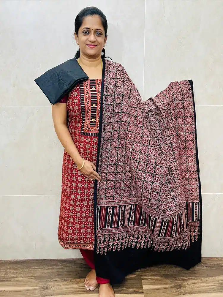 Natural dyed Ajrakh cotton top with Ajrakh dupatta and cotton bottom