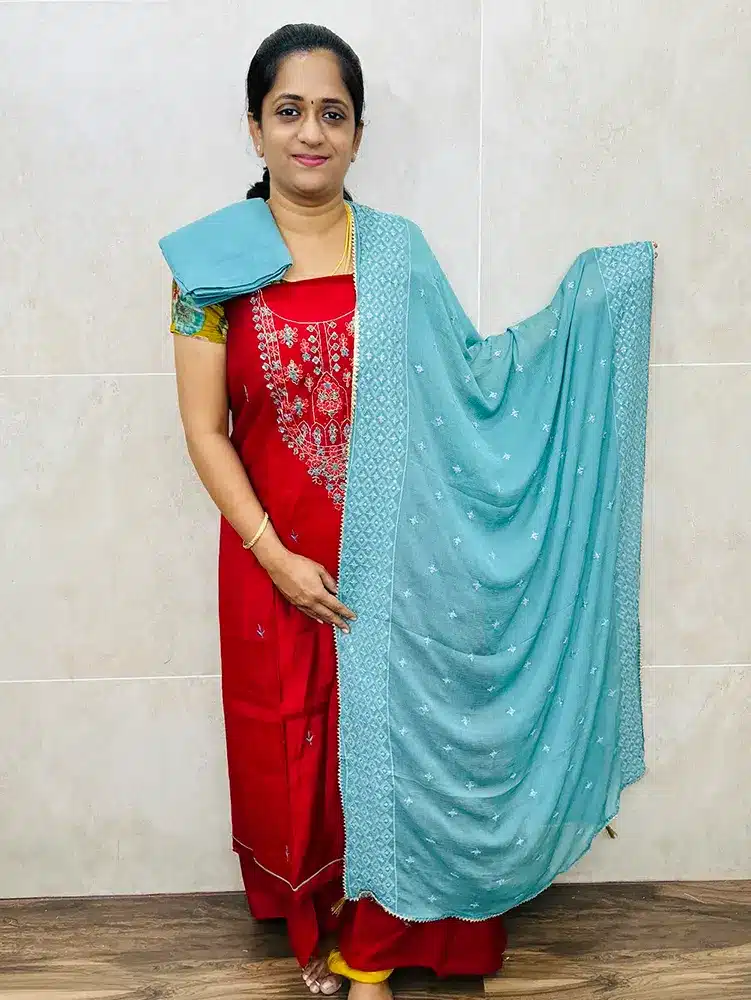 Premium muslin silk top with embroidered Georgette dupatta and cotton bottom