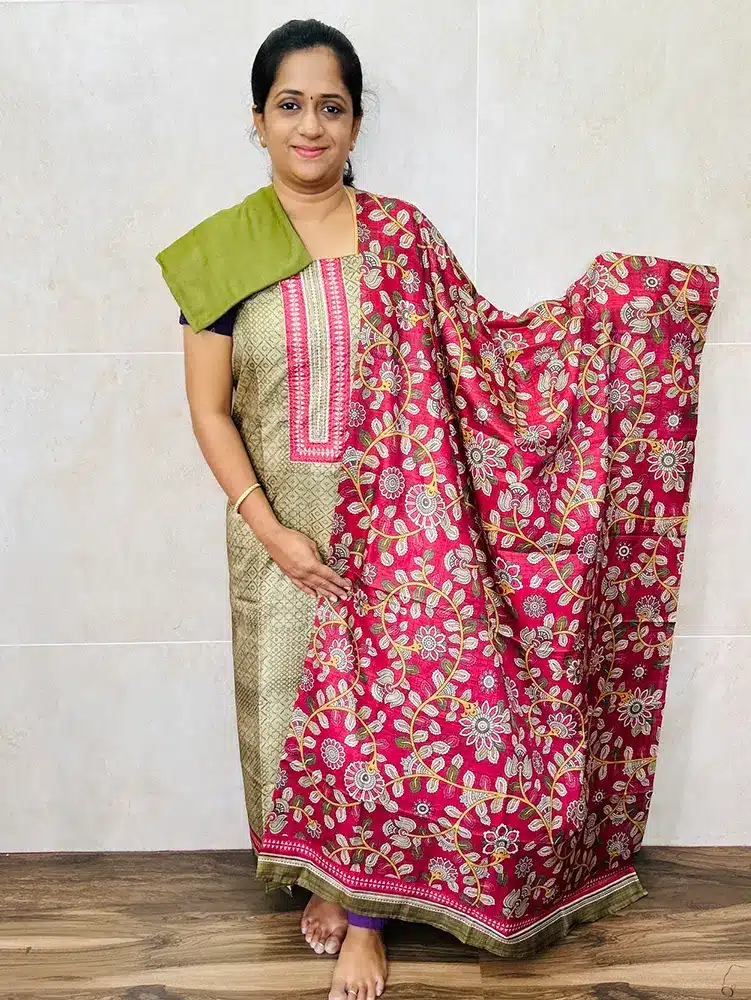 Premium semi tussar top with semi tussar dupatta and cotton silk bottom