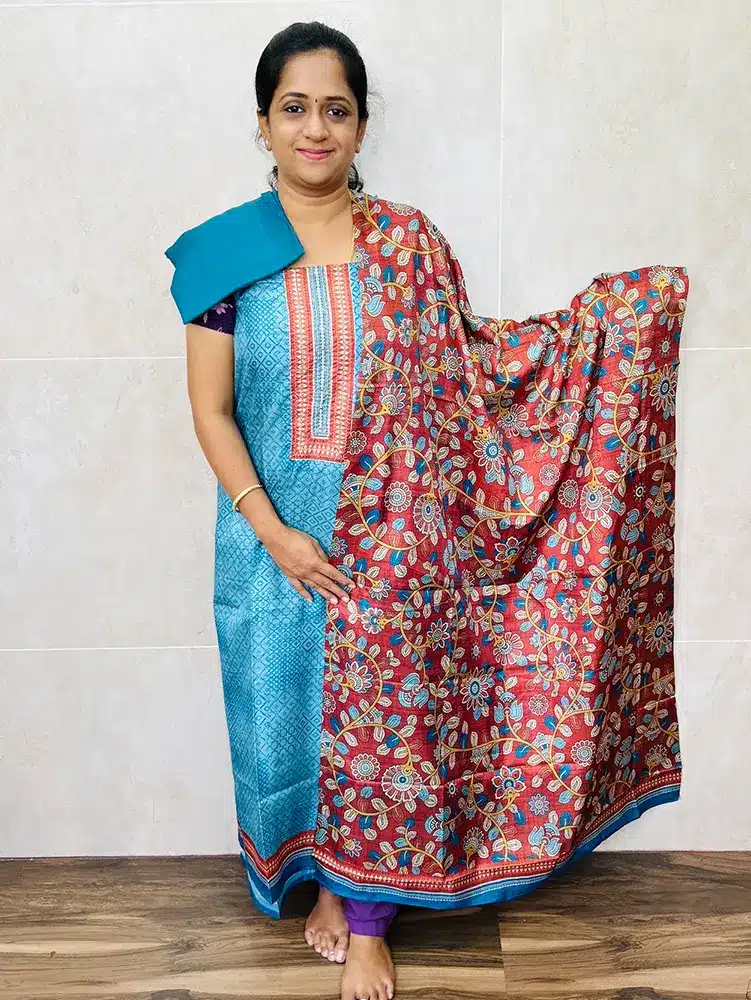 Most of our cotton salwar suits, measurement of the top will be 2.5 meters, dupatta will be from 2.2 to 2.5 meters and bottom will be 2 meters. If you have measurement constraint, please check with us through whatsapp (9176641794) prior booking.