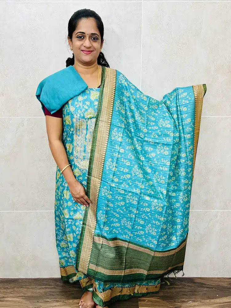 Premium semi tussar top paired with semi tussar dupatta and cotton silk bottom