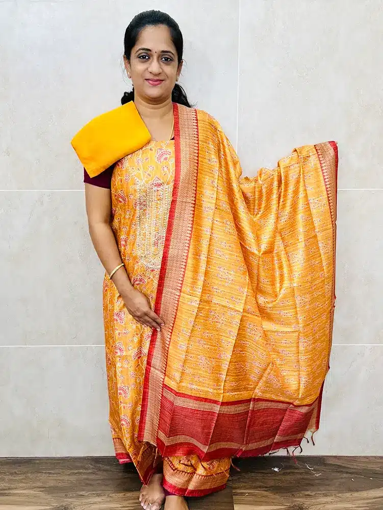 Premium semi tussar top paired with semi tussar dupatta and cotton silk bottom