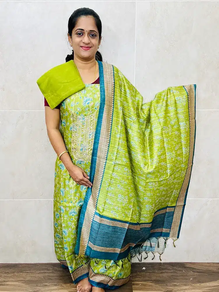 Premium semi tussar top paired with semi tussar dupatta and cotton silk bottom
