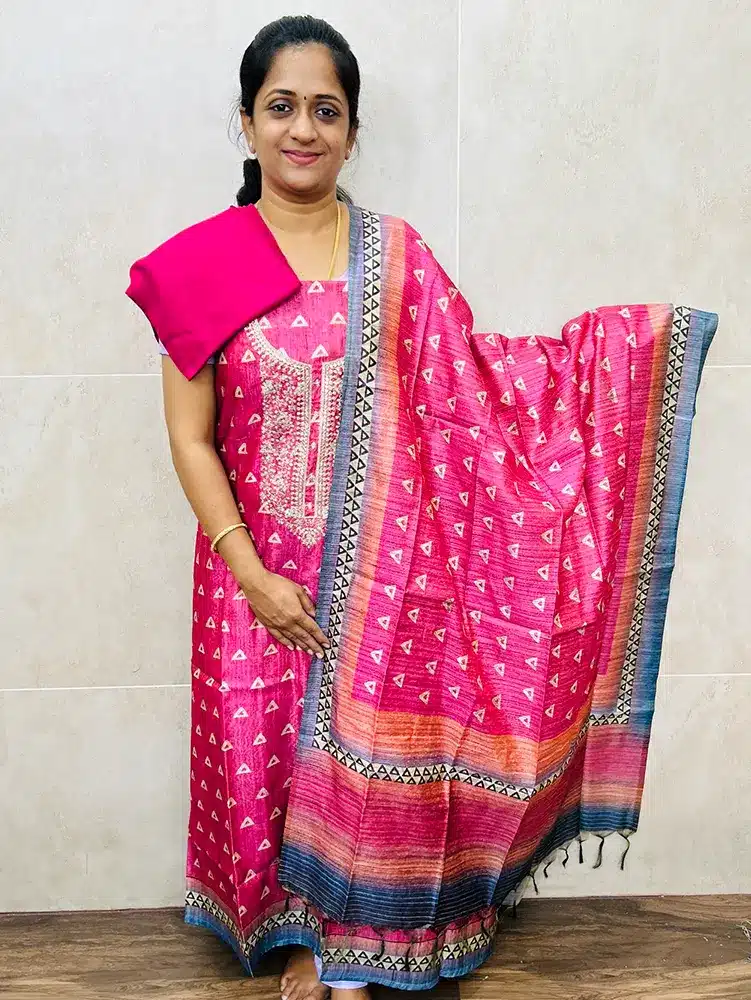Premium semi tussar top paired with semi tussar dupatta and cotton silk bottom