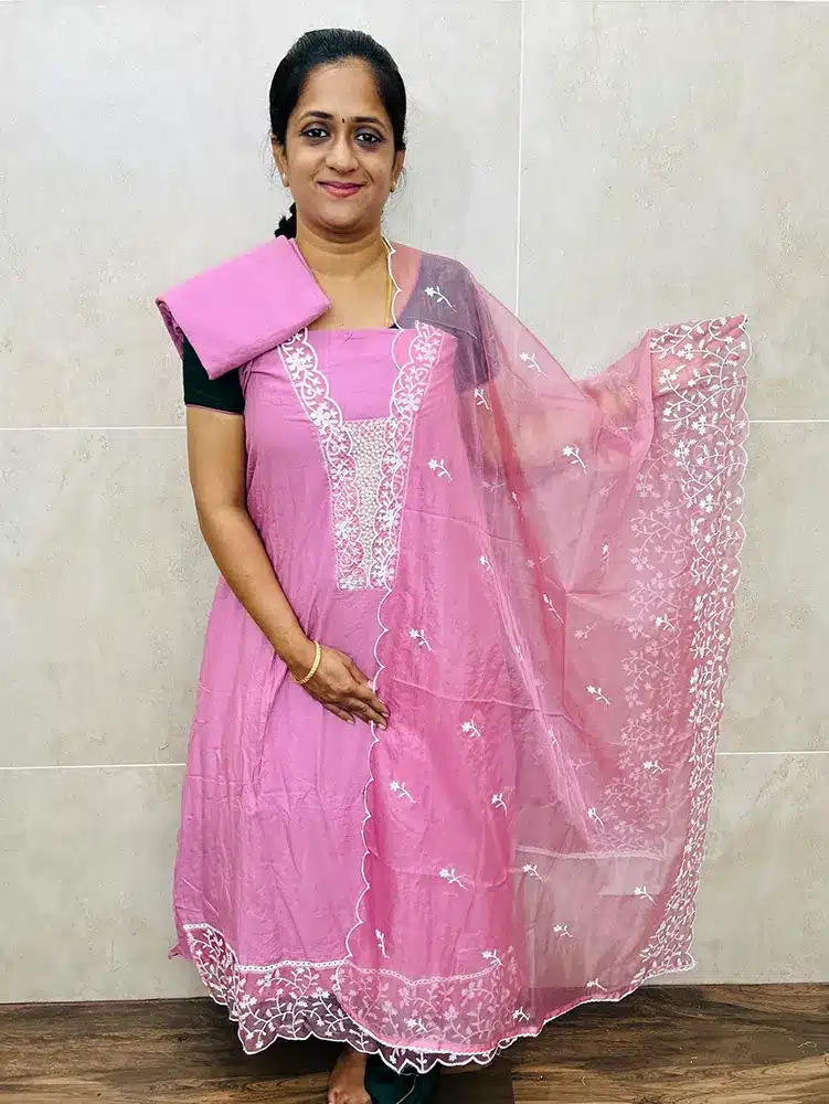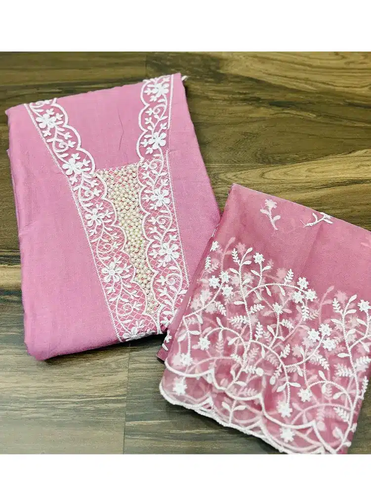 Premium Soft cotton top with beautifully embroidered yoke paired with organza dupatta and cotton bottom
